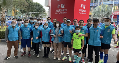 2022年12月18日儋马参赛人员检录前跟后勤人员合影。