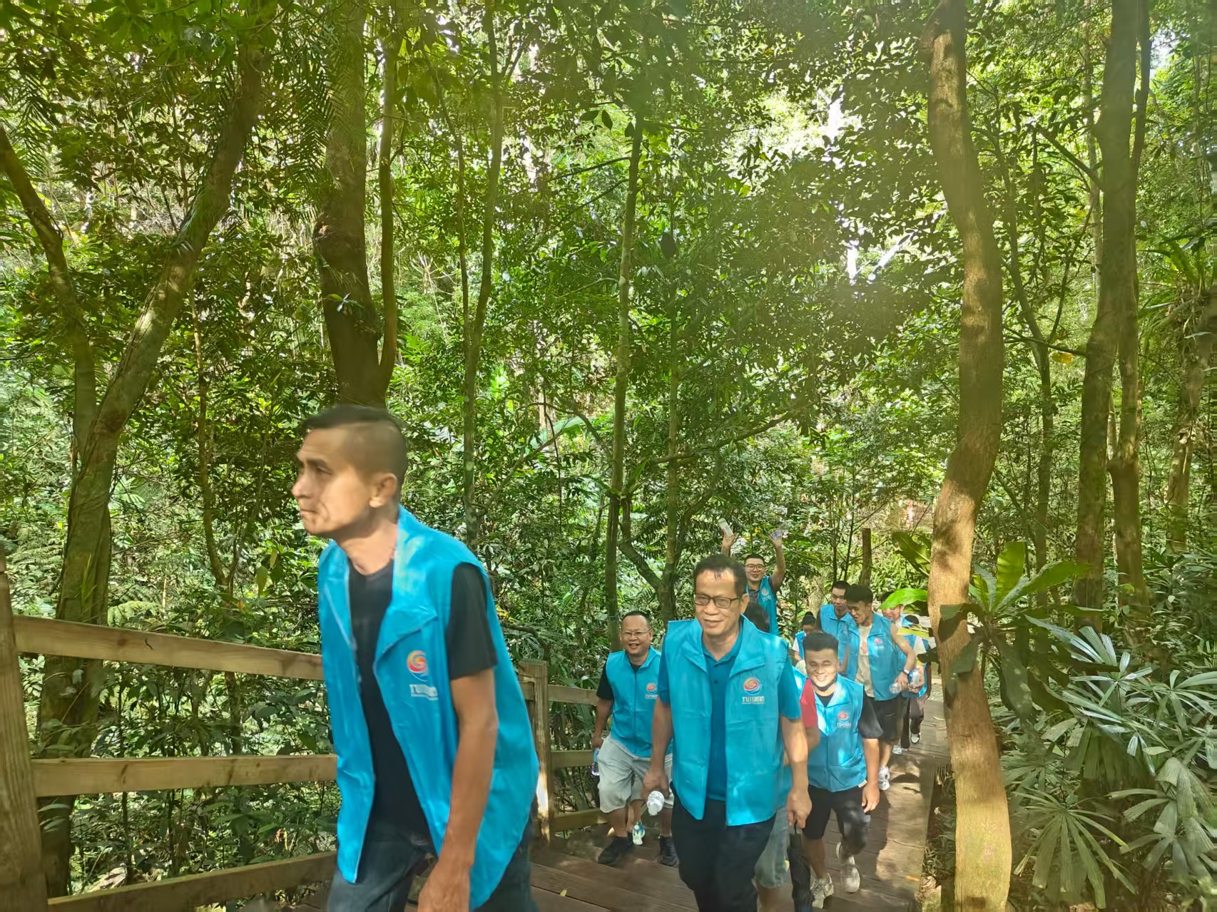 踏入五指山木栈道,阳光透过茂密的热带丛林,在石板路上投下斑驳光影。最初的兴奋很快被陡峭的台阶考验,体力差异、路况变化,让攀登成了一场 “微型实战”—— 这不正像我们的消防工程?有难题,有挑战,但只要携手,就有解法。“来,我拉你一把!” 体力好的同事主动回身,给落在后面的伙伴借力;“歇会儿,喝口水!” 后勤组早已备好物资,在休息点递上毛巾与补给;山林间,回荡的不仅是脚步声,更是团队协作的和声。每一次扶持、每一句鼓励,都在复刻项目现场的默契:方案讨论时的头脑风暴,施工攻坚时的并肩作战,验收成功后的击掌相庆…… 原来,我们早已把 “团结” 刻进了每一步。
