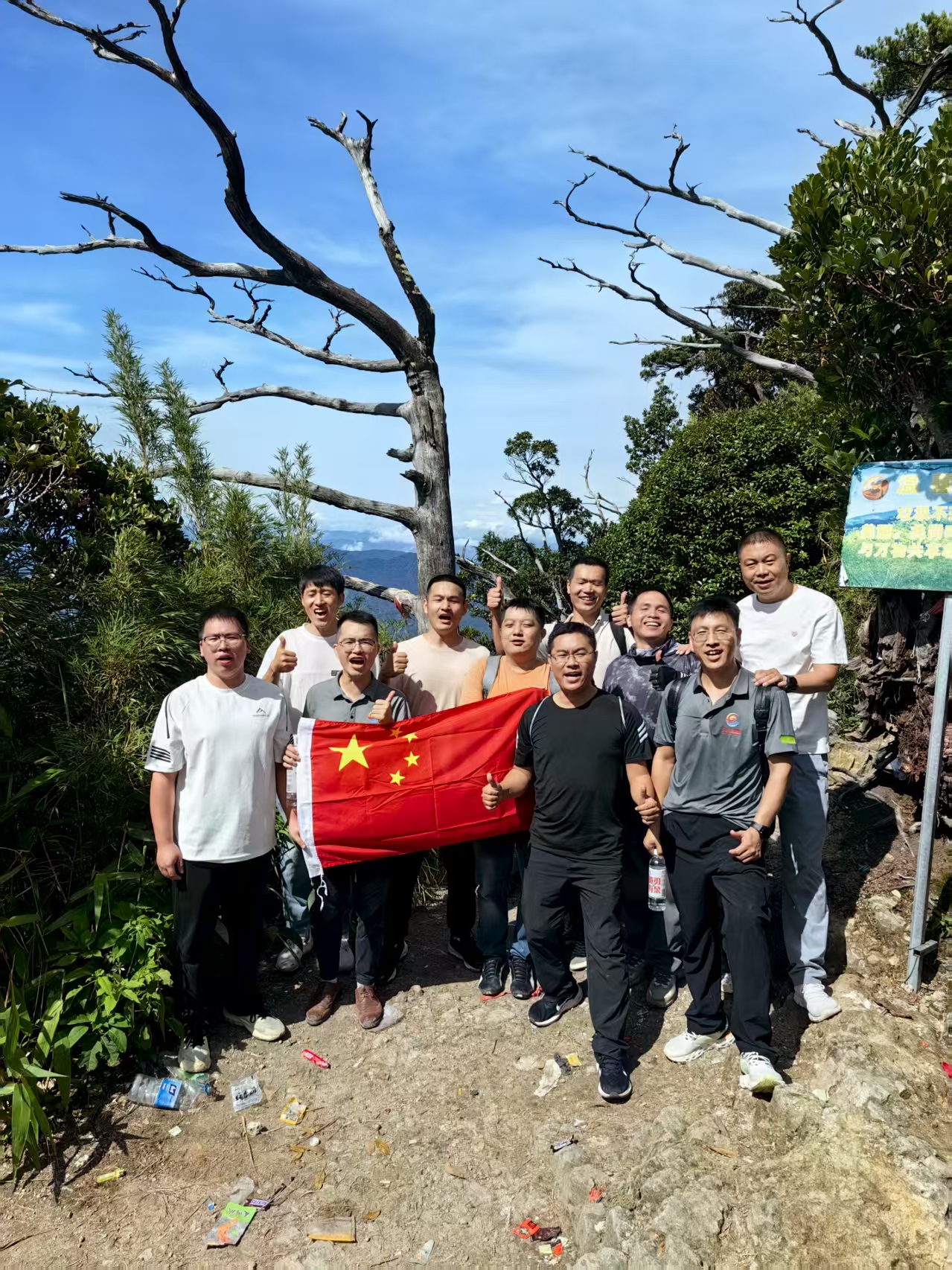 当登上山顶,眼前云海翻涌、群峰竞秀,山风裹挟着草木清香扑面而来。伙伴们兴奋地展开旗帜,鲜艳的红在蓝天绿树间格外夺目 —— 这一刻,疲惫烟消云散,心底涌起的是 “会当凌绝顶” 的豪迈,更是 “一群人、一件事、一条心” 的滚烫信念。